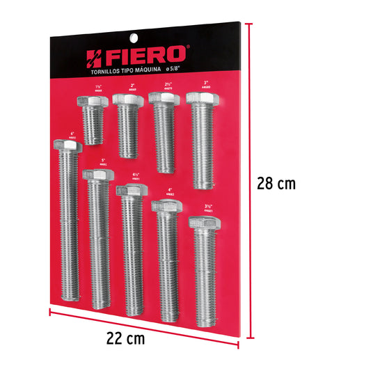 Proveedor:FieroExhibidor Fiero con tornillos tipo máquina, 5/8', 55903Producto montado sobre hoja de PVC rígido espumado y asegurado con alambre galvanizado Con orificio para colgarse Incluye producto real...