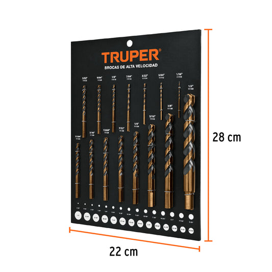 Proveedor:TruperExhibidor Truper de brocas de alta velocidad, 55565Exhibidor dividido por familia de producto Producto asegurado sobre hojas de PVC rígido impreso Incluye producto real en todas las medidas...