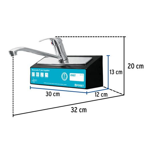 Proveedor:FosetExhibidor con mezcladora F-317A, Foset, 55587Producto no funcional, exclusivo para exhibición Base fabricada en lámina calibre 20 con acabado en pintura electrostática color negro mate...