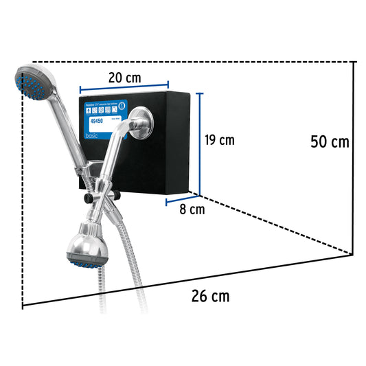 Proveedor:FosetExhibidor con monomando para regadera AQM-71, Foset, 55467Base fabricada en lámina calibre 20 con acabado en pintura electrostática color negro mate Adaptación para colgarse en panel ranurado...