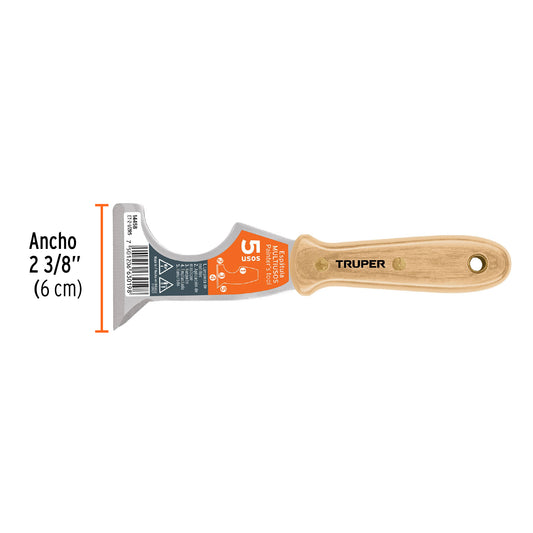 Proveedor:TruperEspátula 2-1/2' de 5 usos con mango de madera, Truper Caja con 6, 14458Hoja de acero al alto carbono, templada para máxima flexibilidad sin deformarse Mango ergonómico de madera Hoja a todo lo...