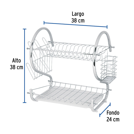 Proveedor:FosetEscurridor de acero cromado con 2 niveles para trastes Caja con 2, 47908Fabricado en acero cromado Nivel inferior para vasos, tazones y otros utensilios Segundo nivel para platos Canastilla doble desmontable para...