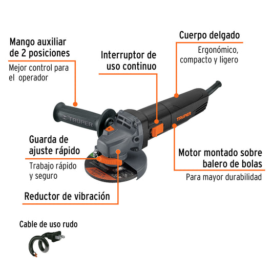 Proveedor:TruperEsmeriladora angular 4-1/2', 1100W, TRUPER PRO, 100902