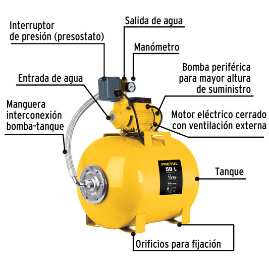 Proveedor:PretulEquipo hidroneumático 50L, bomba periférica 1/2 HP, Pretul, 20184Incrementa la presión de agua o la mantiene constante Se utiliza en lugares donde la presión es muy baja o...