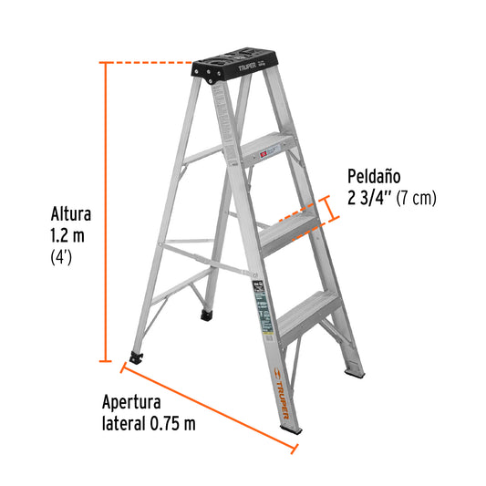 Proveedor:TruperEscalera de tijera 100% aluminio tipo lll 4 peldaños, Truper, 10438