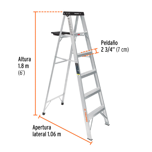 Proveedor:TruperEscalera de tijera 100% aluminio tipo ll 6 peldaños, Truper, 10459