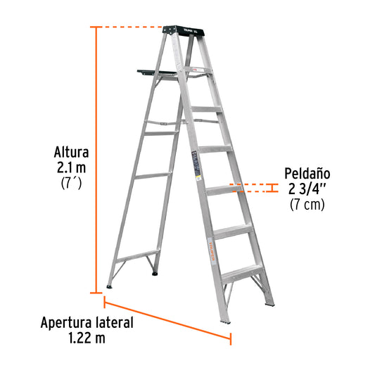 Proveedor:TruperEscalera de tijera 100% aluminio tipo ll 7 peldaños, Truper, 10460