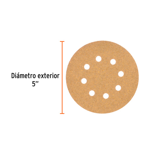 Proveedor:Truperdiscos de lija 5' grano 60 lijadora roto-orbital Caja con 5, 17848Fabricado en óxido de aluminio 8 Perforaciones para una extracción de polvo eficiente Respaldo con fijación hook and loop Ideal para...