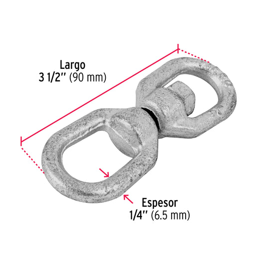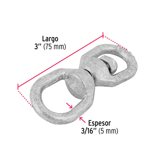 Proveedor:FieroDestorcedor forjado de 3/16', Fiero Caja con 4, 44105Forjado en acero al carbono Acabado galvanizado Eje giratorio *No exceder límite marcado