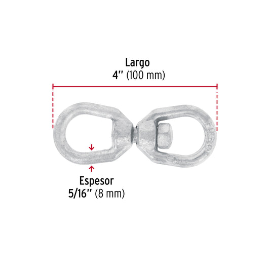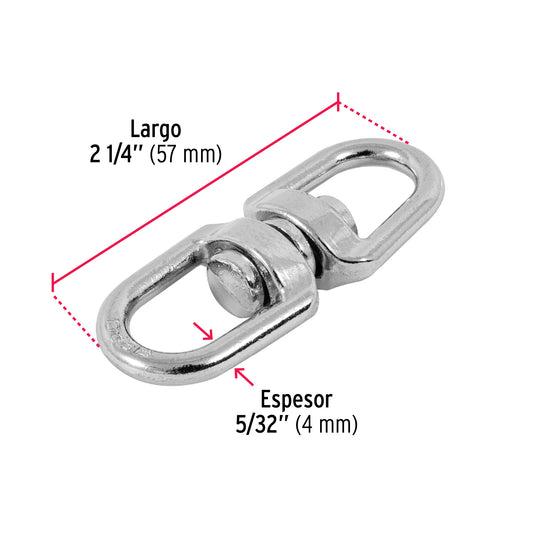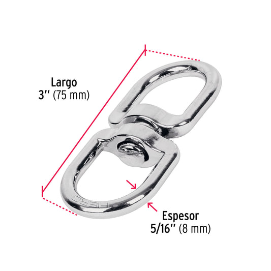 Proveedor:FieroDestorcedor metálico de 5/16', Fiero Caja con 12, 44101Cuerpo metálico, acabado niquelado para mayor resistencia a la corrosión Eje giratorio Para uso ligero, evita enredos en cadenas ,...