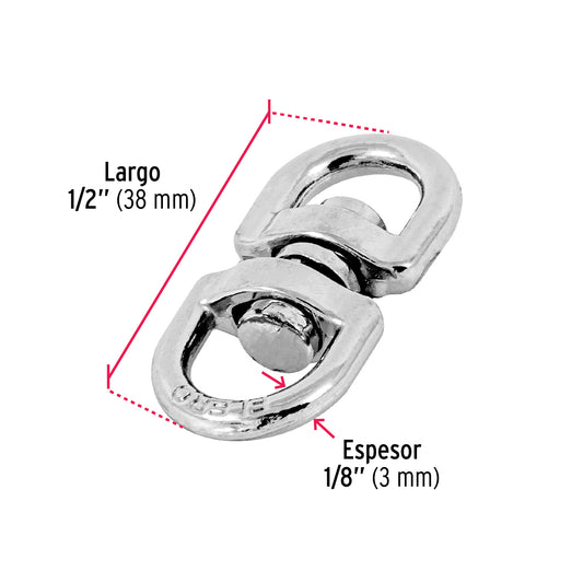 Proveedor:FieroDestorcedor metálico de 1/8', Fiero Caja con 12, 44097Cuerpo metálico, acabado niquelado para mayor resistencia a la corrosión Eje giratorio Para uso ligero, evita enredos en cadenas ,...