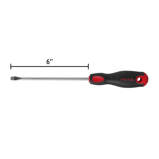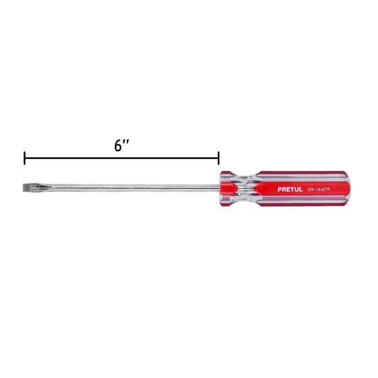 Proveedor:PretulDesarmador plano 1/4 x 6' mango de PVC, Pretul Caja con 6, 21462Barra de acero al carbono Mango de PVC Marcado y código de color para fácil identificación de medida y punta...