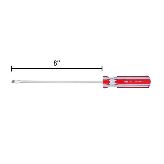Proveedor:PretulDesarmador plano 1/4 x 8' mango de PVC, Pretul Caja con 6, 21460Barra de acero al carbono Mango de PVC Marcado y código de color para fácil identificación de medida y punta...