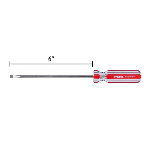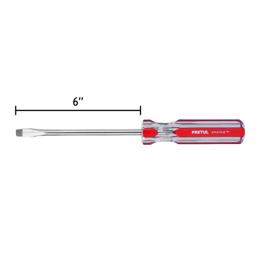 Proveedor:PretulDesarmador plano 5/16 x 6' mango de PVC, Pretul Caja con 6, 21463Barra de acero al carbono Mango de PVC Marcado y código de color para fácil identificación de medida y punta...