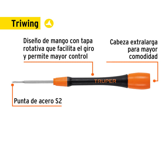 Proveedor:TruperDesarmador de precisión punta triwing Y000 mango ergonómico Caja con 6, 100696