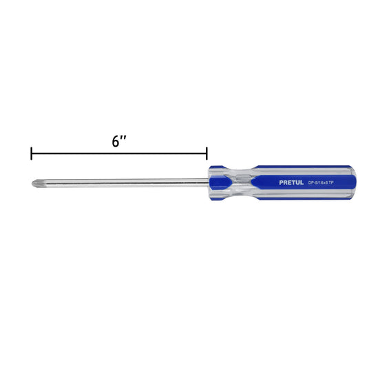 Proveedor:PretulDesarmador de cruz 5/16 x 6' mango de PVC, Pretul Caja con 6, 21470Barra de acero al carbono Mango de PVC Marcado y código de color para fácil identificación de medida y punta...