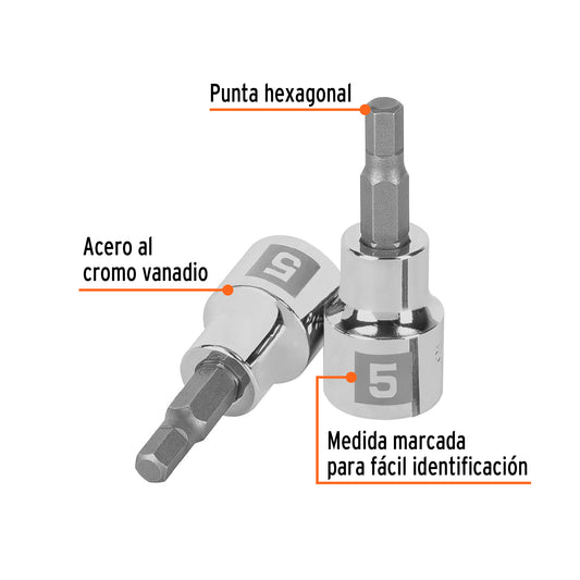 Proveedor:TruperDado punta hexagonal de 5 mm, cuadro 3/8', Truper Caja con 6, 13486Fabricado en acero al cromo vanadio con acabado pulido espejo resistente a la oxidación y de fácil limpieza Sistema de sujeción...