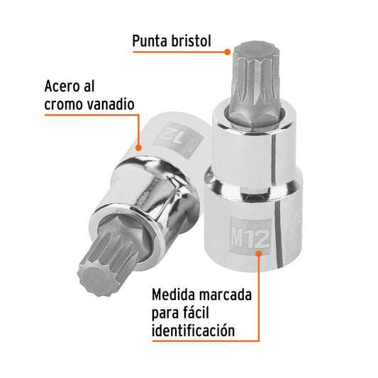 Proveedor:TruperDado punta corta bristol M5, cuadro 1/2', Truper Caja con 6, 101292Fabricado en acero al cromo vanadio con acabado pulido espejo resistente a la oxidación y de fácil limpieza Sistema de sujeción...