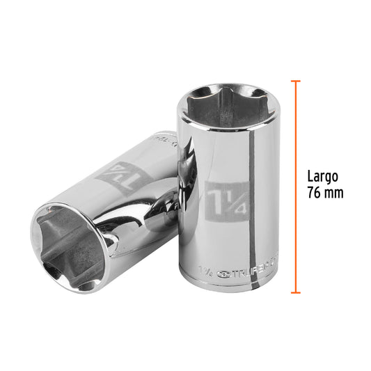 Proveedor:TruperDado largo de 1-1/4' 12 puntas, cuadro 1/2', Truper Caja con 6, 101005Fabricado en acero al cromo vanadio con acabado pulido espejo resistente a la oxidación y de fácil limpieza Sistema de sujeción...
