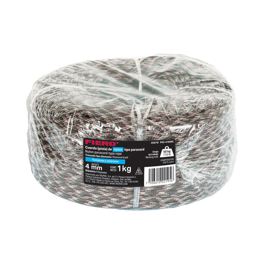 Proveedor:FieroPiola de nylon paracord de 4mm, rollo, negro, 1kg, FIERO, 45578Piola de nylon paracord de 4mm, rollo, negro, 1kg, FIERO