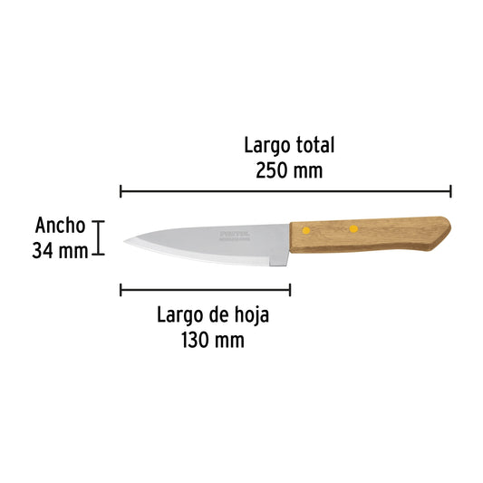Proveedor:PretulCuchillo de chef 6' mango de madera, Pretul Caja con 6, 23080Hoja de acero inoxidable para mayor resistencia Desbaste en forma de "V" Mango de madera tropical con remaches de aluminio...