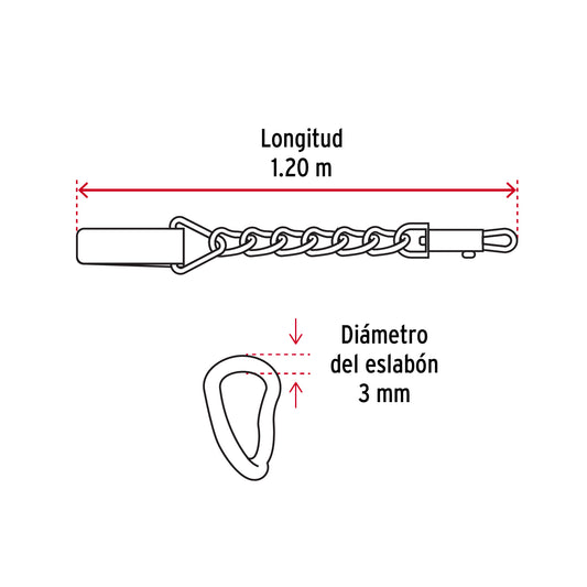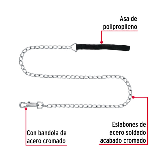 Proveedor:FieroCorrea de 1.2 m de paseo para perro, eslabón 3 mm, Fiero Caja con 12, 44282Eslabones de acero soldados, con acabado cromado para mayor durabilidad y resistencia a la corrosión Con bandola de acero cromado...