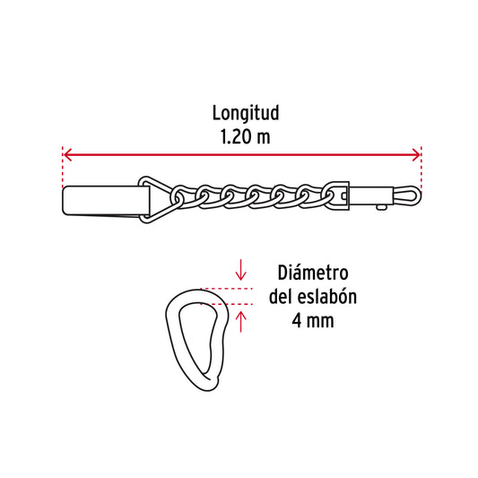 Proveedor:FieroCorrea de 1.2 m de paseo para perro, eslabón 4 mm, Fiero Caja con 12, 44284Eslabones de acero soldados, con acabado cromado para mayor durabilidad y resistencia a la corrosión Con bandola de acero cromado...