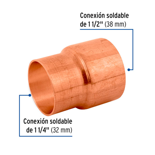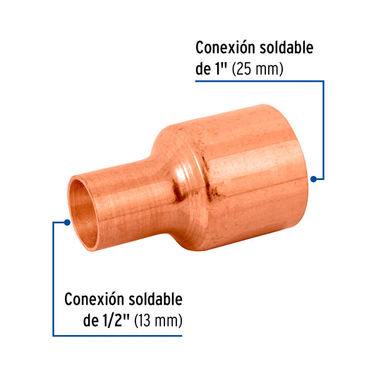 Proveedor:FosetCople reducción campana cobre 1-1/4' x1/2', Foset Caja con 2, 48866Cuerpo de cobre resistente a la corrosión Pared lisa interior que reduce la pérdida de presión por fricción Larga vida...