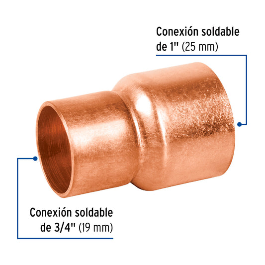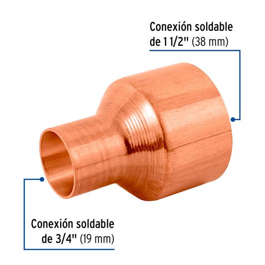 Proveedor:FosetCople reducción campana cobre 1-1/2' x3/4', Foset Caja con 2, 48870Cuerpo de cobre resistente a la corrosión Pared lisa interior que reduce la pérdida de presión por fricción Larga vida...