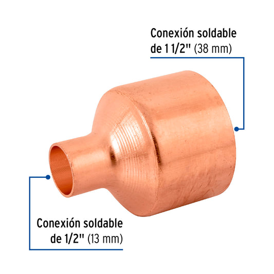 Proveedor:FosetCople reducción campana cobre 1-1/2' x1/2', Foset Caja con 2, 48869Cuerpo de cobre resistente a la corrosión Pared lisa interior que reduce la pérdida de presión por fricción Larga vida...