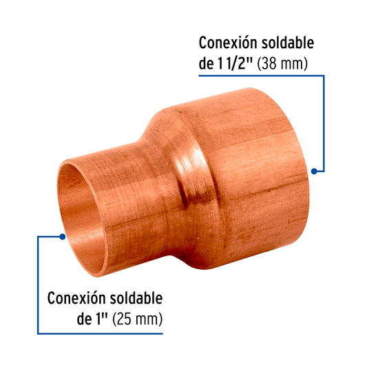 Proveedor:FosetCople reducción campana cobre 1-1/2' x 1', Foset Caja con 2, 48871Cuerpo de cobre resistente a la corrosión Pared lisa interior que reduce la pérdida de presión por fricción Larga vida...