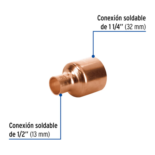 Proveedor:FosetCople reducción bushing cobre 1-1/4 x 1/2', Foset Caja con 2, 48873Cuerpo de cobre resistente a la corrosión Pared lisa interior que reduce la pérdida de presión por fricción Larga vida...