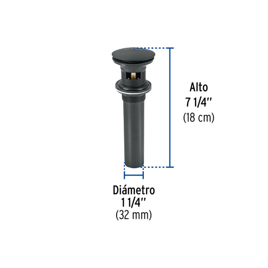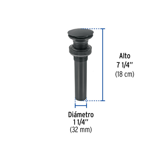 Proveedor:FosetContra p/lavabo, 1-1/4', con rebosadero, hongo, latón, negro Caja con 2, 45703Cuerpo, tubo y tuerca de latón para máxima duración Sistema con rebosadero Para conectar con céspoles de 1 1/4" Para...