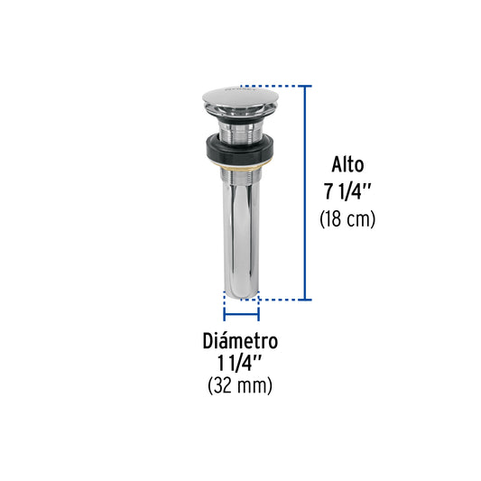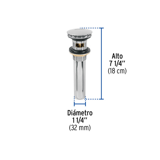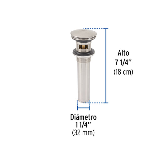 Proveedor:FosetContra p/lavabo con rebosadero, sistema push, satín, 1-1/4' Caja con 2, 45283Cuerpo, tubo y tuerca de latón para máxima duración Sistema con rebosadero Para conectar con céspoles de 1 1/4" Para...