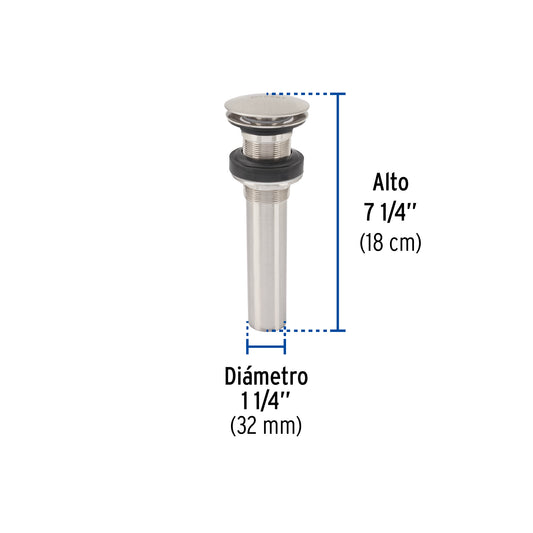 Proveedor:FosetContra p/lavabo, 1-1/4', con rebosadero, hongo, latón, satín Caja con 2, 45702Cuerpo, tubo y tuerca de latón para máxima duración Sistema con rebosadero Para conectar con céspoles de 1 1/4" Para...