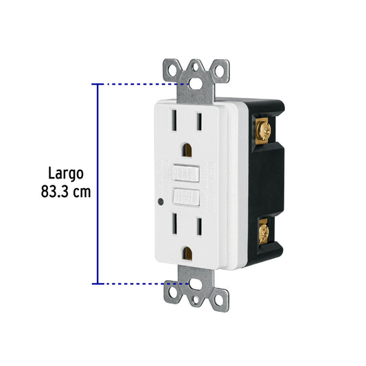 Proveedor:VolteckContacto dúplex, falla a tierra GFCI (ICFT), Classic Caja con 5, 46107Fabricado en policarbonato con soporte de acero galvanizado LED indicador de voltaje en línea, botón de prueba y restablecimiento Protege...