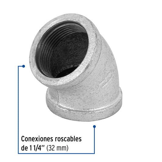 Proveedor:FosetCodo 45° acero galvanizado de 1-1/4', Foset Caja con 4, 48752Cuerpo de hierro maleable con recubrimiento de zinc que garantiza una gran durabilidad Alta dureza Resistente a la corrosión, altas...