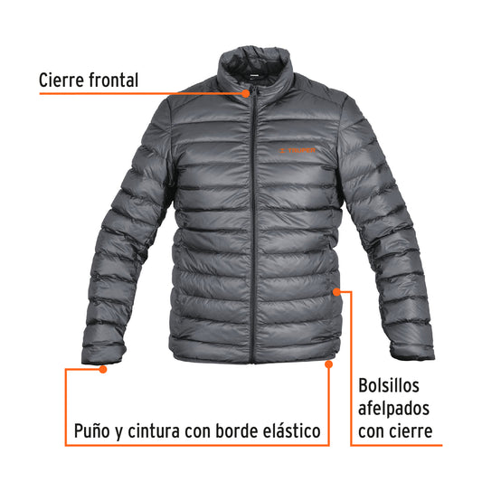 Proveedor:TruperChamarra de plumas para hombre, gris, CH, Truper, 66000Exterior y forro 100% nylon Relleno 90% plumón, 10% pluma de ganso Diseño compactable para guardarse en bolsa y trasladar...