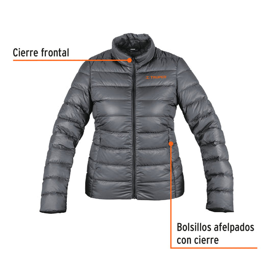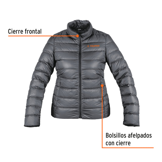 Proveedor:TruperChamarra de plumas para mujer, gris, CH, Truper, 66004Exterior y forro 100% nylon Relleno 90% plumón, 10% pluma de ganso Diseño compactable para guardarse en bolsa y trasladar...