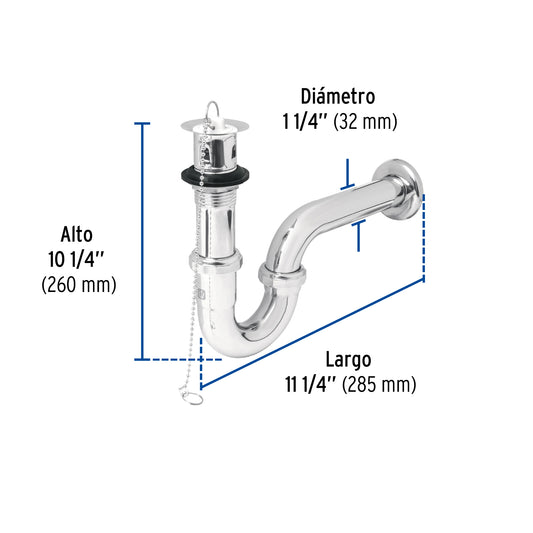 Proveedor:FosetCéspol 1-1/4' c/contra, tapón y cadena, latón cromo,p/lavabo Caja con 2, 49335Cuerpo y tubos de latón para máxima duración Chapetón de acero inoxidable Contra con tubo de 1 1/4", tapón y cadena...