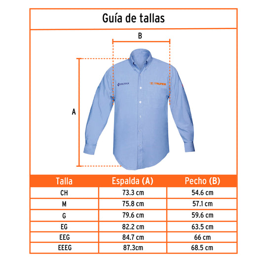 Proveedor:TruperCamisa manga larga para hombre, azul, EG, Truper, 60347