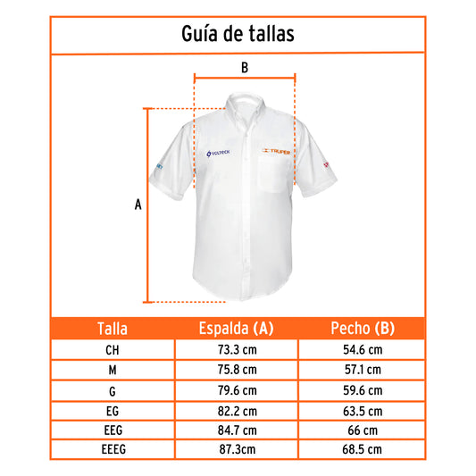 Proveedor:TruperCamisa manga corta para hombre, blanca, EG, Truper, 60367