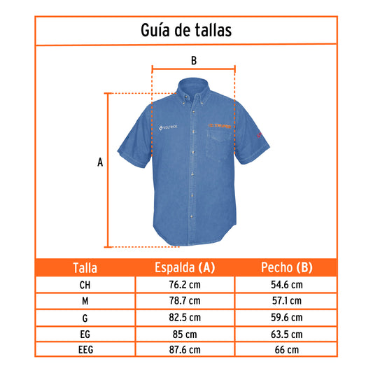 Proveedor:TruperCamisa de mezclilla manga corta para hombre, EEG, Truper, 60384