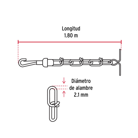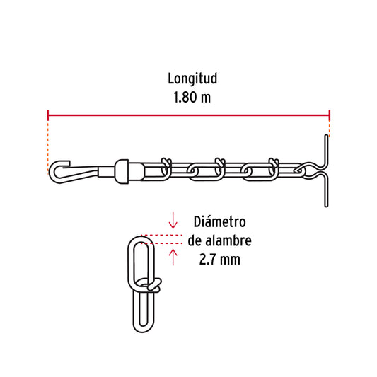 Proveedor:FieroCadena de 1.8 m de amarre para perro, 2.7 mm, Fiero Caja con 6, 44315Fabricada en acero galvanizado Resistente a la corrosión Eslabones tejidos