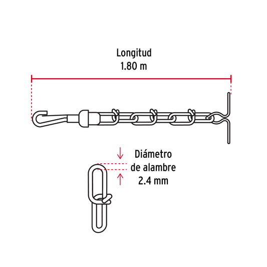 Proveedor:FieroCadena de 1.8 m de amarre para perro, 2.4 mm, Fiero Caja con 6, 44314Fabricada en acero galvanizado Resistente a la corrosión Eslabones tejidos