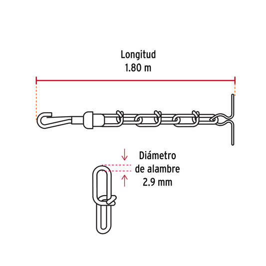 Proveedor:FieroCadena de 1.8 m de amarre para perro, 2.9 mm, Fiero Caja con 6, 44316Fabricada en acero galvanizado Resistente a la corrosión Eslabones tejidos
