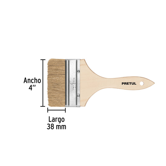 Proveedor:PretulBrocha uso general de 4' con mango de madera, Pretul Caja con 12, 24476100% Cerda natural Ideales para superficies de madera, concreto y metal Ideal para resinas, pegamentos, acetona, pintura y otros solventes...
