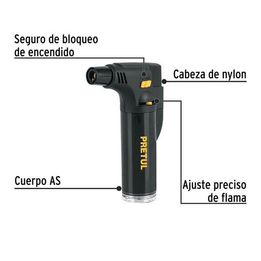 Proveedor:PretulMechero recargable para flamear alimentos de 42ml, PRETUL Caja con 12, 29953Cuerpo AS y cabeza de nylon Capacidad 42 ml Ajuste preciso de flama Seguro de bloqueo de encendido Válvula para...