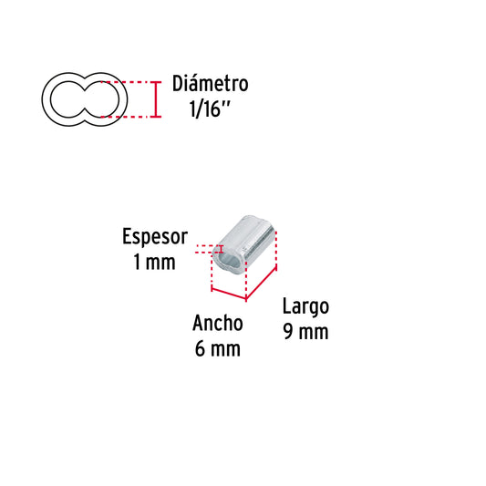 Proveedor:FieroBolsa con 50 casquillos dobles de aluminio, 1/16', Fiero Caja con 4, 48363Fabricados en aluminio Resistentes a la corrosión y oxidación Se utilizan para empalmar dos cables y fijar barandillas de cables...