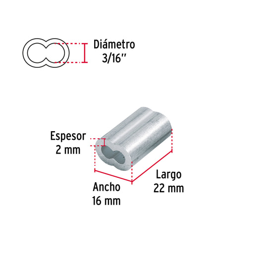 Proveedor:FieroBolsa con 50 casquillos dobles de aluminio, 3/16', Fiero Caja con 2, 48366Fabricados en aluminio Resistentes a la corrosión y oxidación Se utilizan para empalmar dos cables y fijar barandillas de cables...